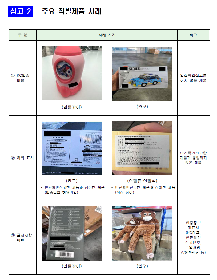 이번 집중검사는 13개 품목에 대해 진행되었으며, 특히 연필류와 필통, 지우개 등 다양한 학용품이 포함되었다. 적발된 제품들은 안전확인신고를 하지 않거나, 허위 표시 및 표시사항 위반 등의 문제를 안고 있었다. 예를 들어, 연필깎이와 완구 제품 중 일부는 KC 인증을 받지 않았거나, 안전확인신고한 제품과 상이한 제품으로 확인되었다.